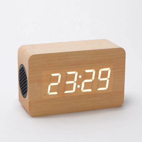 Bt Speaker Digitale Houten Wekker Draagbare Thuiskantoor Slaapkamer Reizen Led Light Display Audiosysteem Houten Bureau Klok