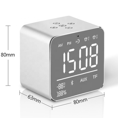 Relógio despertador rádio fm de metal, alarme portátil, alto-falante bt, quarto, escritório, viagem, visor de led, áudio, relógio de mesa