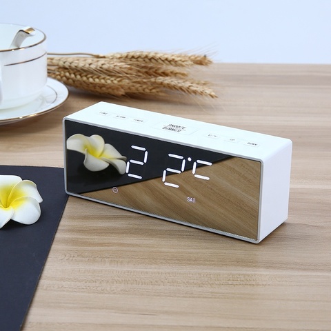 Despertador com espelho curvo, relógio despertador de temperatura digital de soneca modo noturno, relógio de mesa, interruptor de modo de desligamento, com memória, led